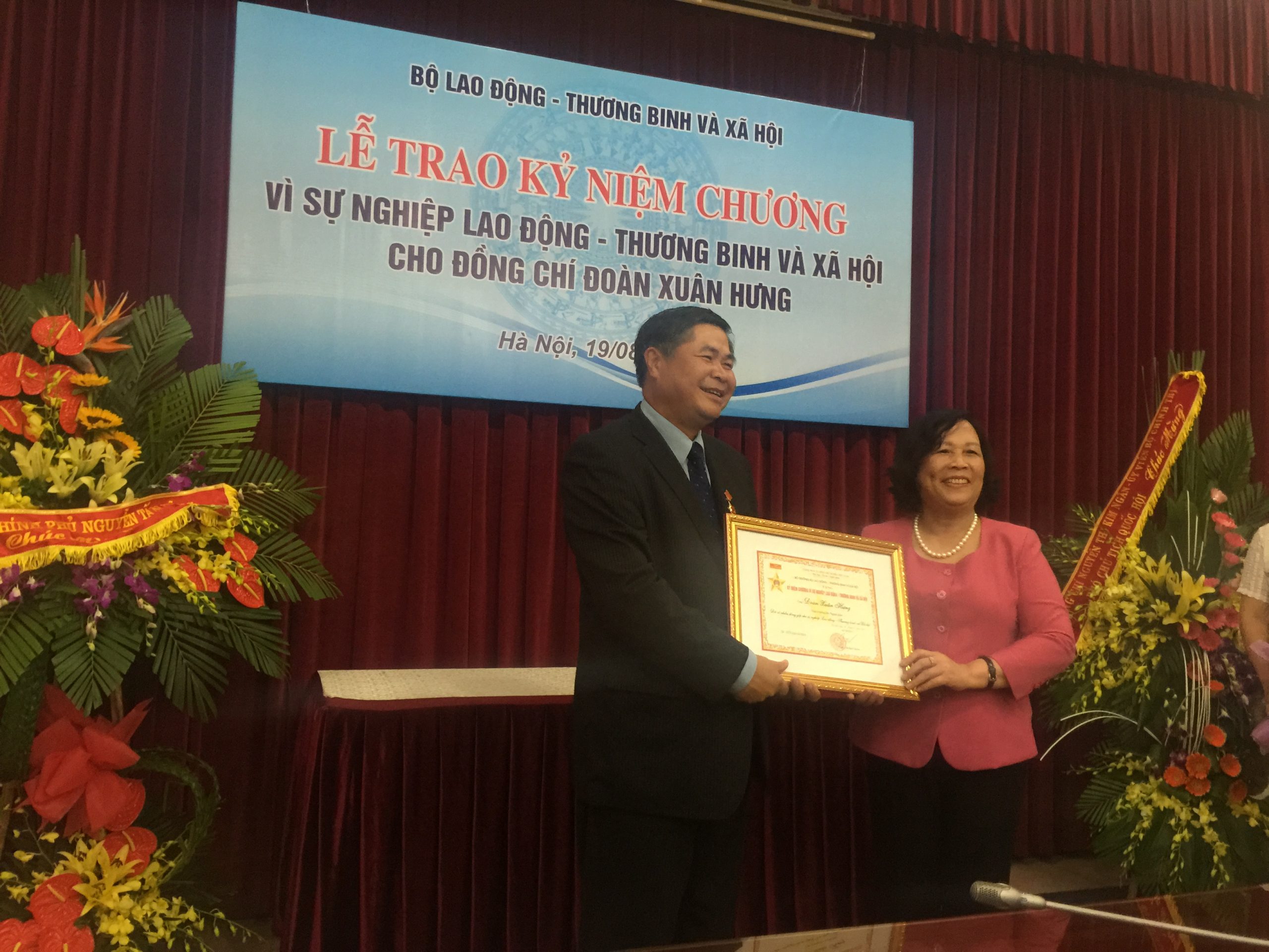 Chiều ngày 19/8/2015, tại trụ sở của Bộ Lao động Thương binh và Xã hội, Bộ trưởng Phạm Thị Hải Chuyền đã trao kỷ niệm chương cho đồng chí Đoàn Xuân Hưng – Thứ trưởng Bộ Ngoại giao cho những đóng góp của ông đối với sự phát triển của Ngành Lao động – Thương […]
