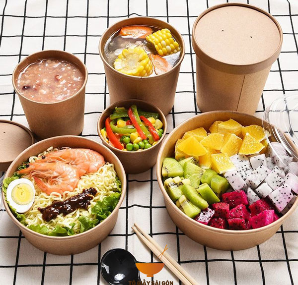 • Tạo sự khác biệt: So với hộp nhựa đơn điệu, thố giấy mang lại cảm giác sạch sẽ, cao cấp và gần gũi hơn, đặc biệt là các loại tô giấy Kraft màu nâu tự nhiên.